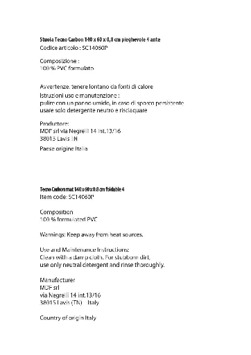 Stuoia pieghevole in resina espansa a densità 30 kg/m³ rivestita in tessuto Carbon ad alta resistenza. Antistrappo, antimuffa, lavabile, antibatterica ed ignifuga. Dotata di fondo in tessuto antiscivolo.