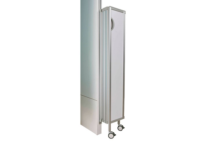 Paravento composto da 8 pannelli pieghevoli in laminato da fissare al muro tramite un apposito binario.