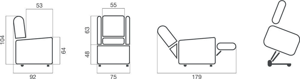 Braccioli estraibili che permettono un comodo trasferimento laterale della persona. Imbottitura in poliuretano espanso indeformabile.