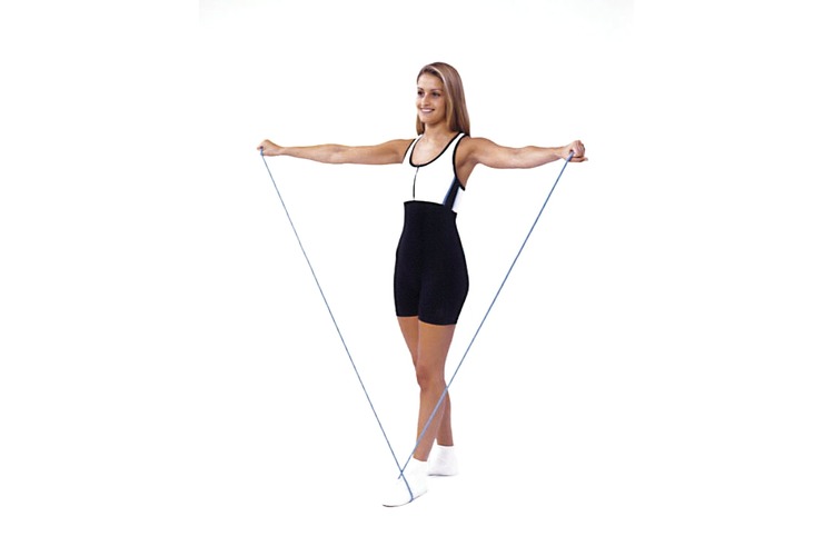 Esempio di utilizzo degli elastici per esercizio di rinforzo degli abduttori