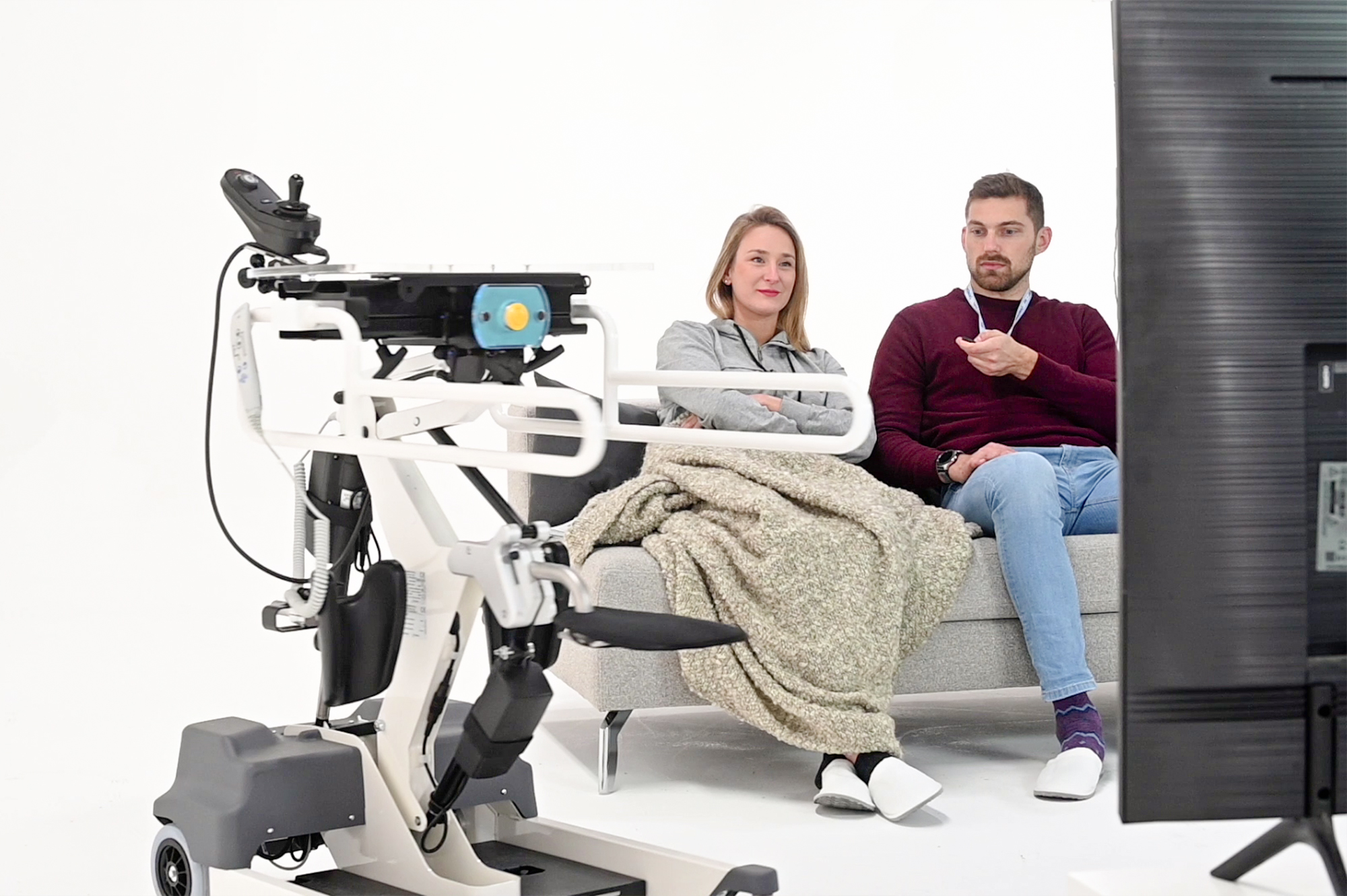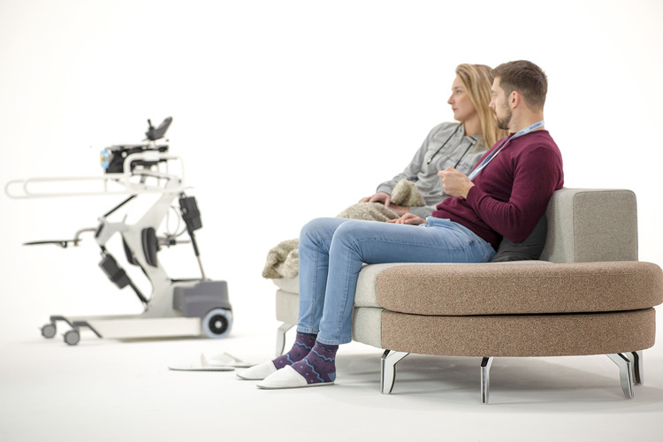 La caratteristica di questo modello di STRUZZO è il telecomando in dotazione per spostare l'ausilio quando non serve e parcheggiarlo dove meno disturba. Quindi l'utente può richiamarlo quando vuole alzarsi e trasferirsi di nuovo.