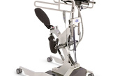 Standing in postura eretta con supporto del bacino a imbracatura. Regolazione dell’altezza della struttura gestita da molla a gas e regolazione della verticalizzazione gestita da motore elettrico, a pulsantiera, alimentato da batteria ricaricabile. Altezza del tavolino regolabile indipendentemente dall’altezza della struttura. Il tavolino grande non segue l’utente durante il passaggio dalla postura seduta a quella eretta. Base allargata per accesso facilitato e fornito di serie con il sellino lungo per una maggiore comodità.